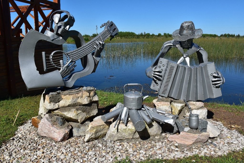 “Los Musiqueros y todos los murales que se encuentran aquí fueron encargadas al mismo artista que fue autor del monumento de Andresito Guacurarí emplazado en la Costanera de Posadas y El Matero del Paseo Bosetti”, señala Juan Carlos, dejando abierta una intriga que minutos después una de sus hijas develará al dar detalles de “La Matera de Bosquemar”, otra de las piezas relacionadas a la cultura matera que se encuentran en el predio; en este caso en el parque de la residencia familiar.