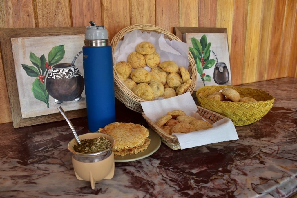 Como buenos materos, Juan Carlos y su familia celebraron el 30 de noviembre pasado el Día Nacional del Mate, arrancando con una mateada acompañada por productos bien típicos de nuestra región como mbeyú y chipas de almidón; en este último había de las tradicionales y también variantes con un sorprendente y exquisito toque gourmet: rellenas con membrillo y con osobuco. “Acá el visitante encuentra cultura matera desde que llega, con la infusión, los acompañamientos del mate; convocamos a unos de los mejores cheff para diseñar este desayuno matero que estamos degustando”, remarca.