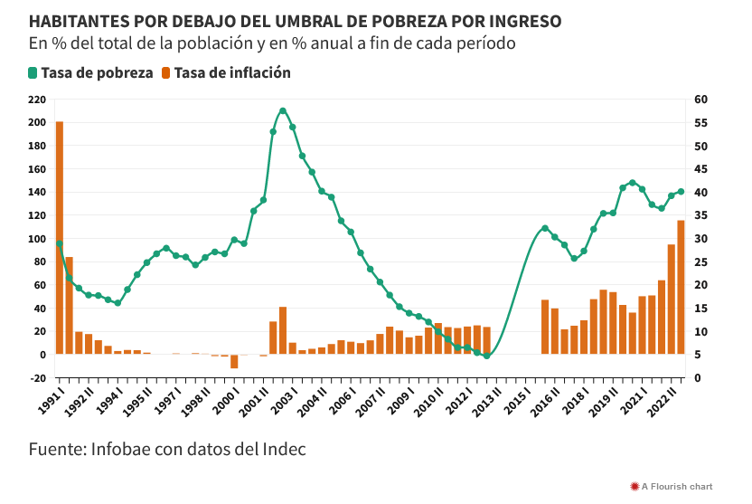El dato es el más alto registrado en el país por el Instituto Nacional de Estadística y Censos (INDEC) desde el pico del 42% alcanzado durante la severa crisis de la pandemia en 2020 y los expertos en estadísticas sociales prevén que el segundo semestre empeore por la aceleración de la inflación, que este año podría llegar hasta el 190% según algunas estimaciones privadas.