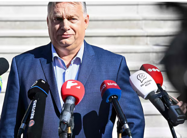 El primer ministro húngaro, Viktor Orban, se dirige a los periodistas frente a un colegio electoral en Budapest, Hungría, durante las elecciones al Parlamento Europeo y las elecciones municipales el 9 de junio de 2024.ATTILA KISBENEDEK