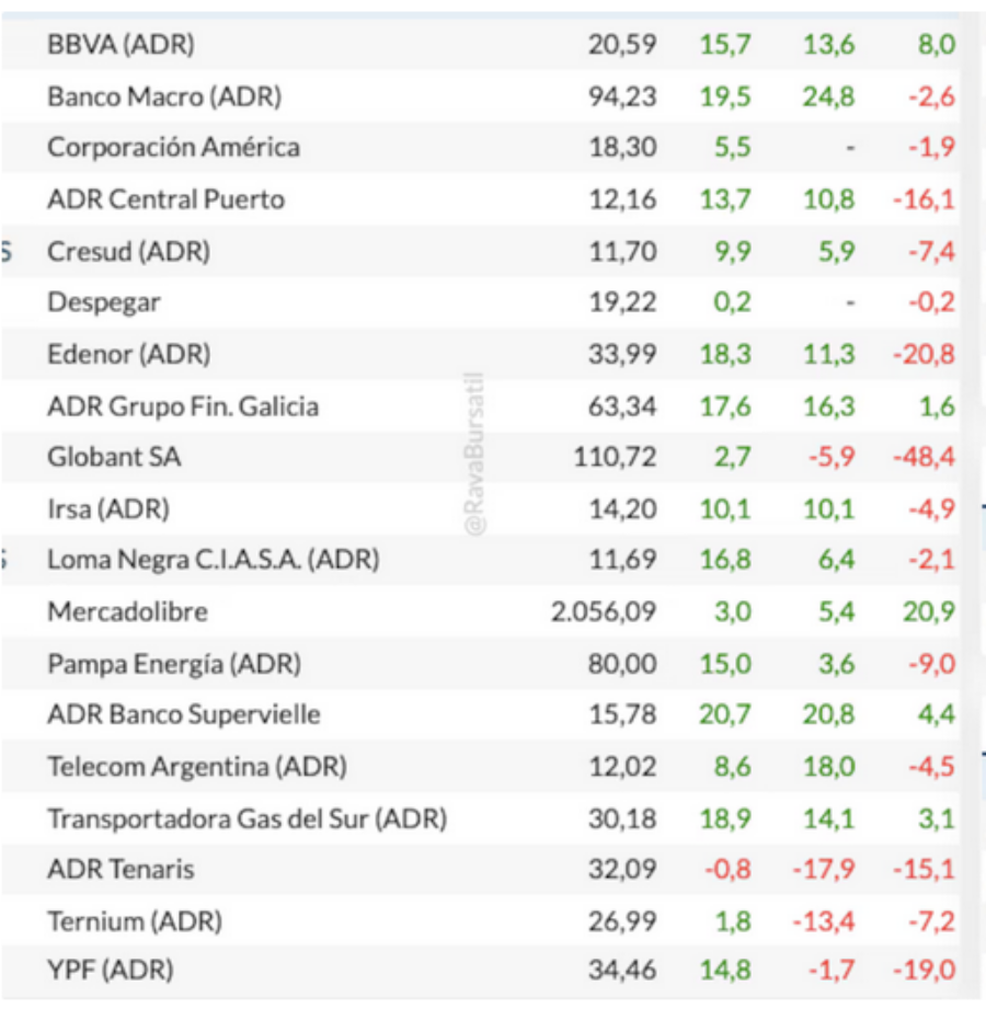 Fuente: Rava Bursátil-precios en dólares (actualizado a las 11,20 horas)