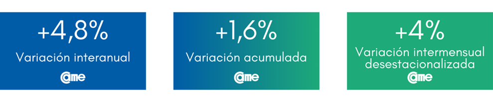 Hubo un progreso de 4,8% interanual en Octubre, y acumula una mejora de 1,6% hasta este periodo medido del del año con relación al 2023. En la comparación intermensual, aumentaron 4%.
