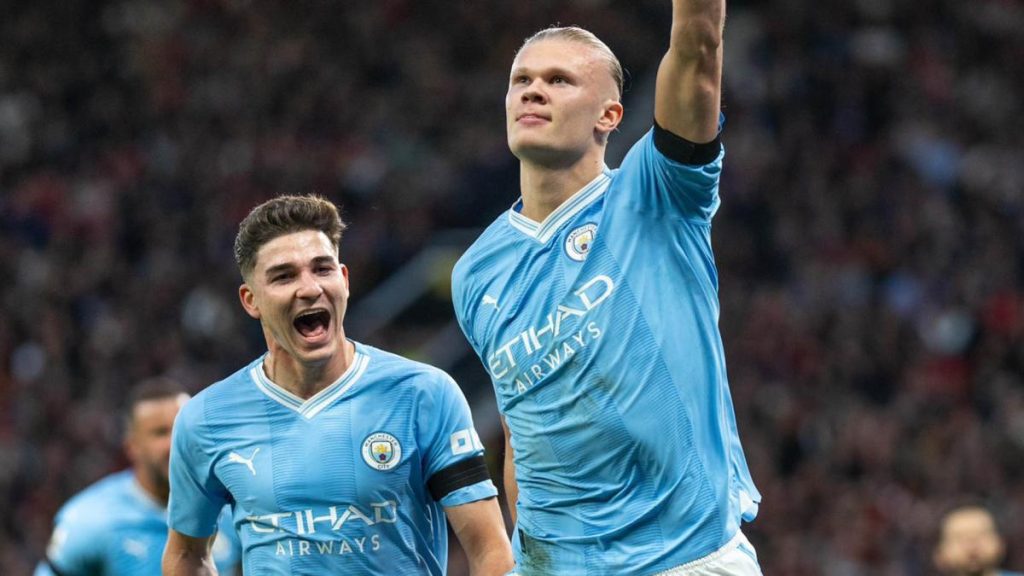 El delantero noruego Erling Haalan, goleador de Manchester City, es uno de los tres delanteros del equipo ideal de la IFFHS / Foto: AFP.