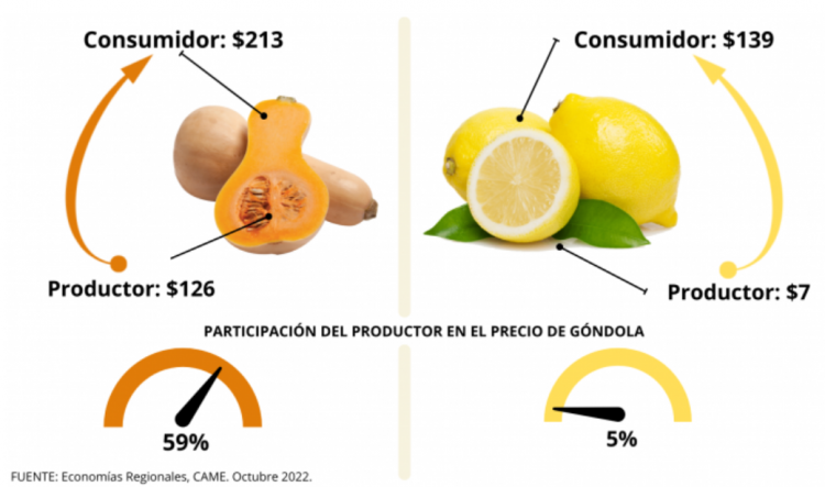 En el caso de la calabaza, el producto con la brecha más baja del mes, los precios al productor aumentaron un 73,6% — fruto de una disminución importante en la oferta, por las sequías en Santiago del Estero y el granizo en Formosa y Chaco — y al consumidor, un 50%.