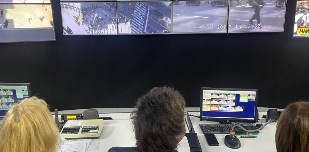 El Presidente, Javier Milei monitoreó la situación desde la central policial, junto con las Ministras; Patricia Bullrich y Sandra Pettovello.