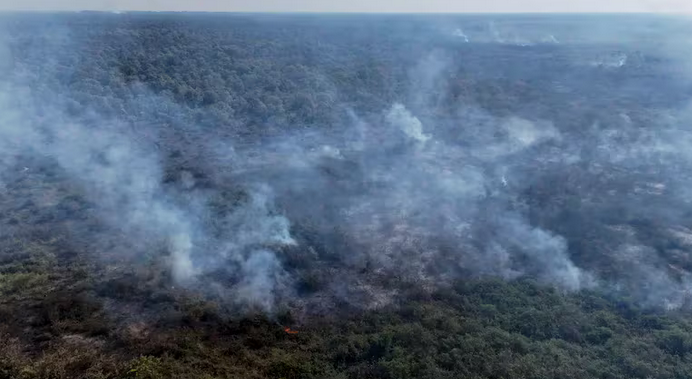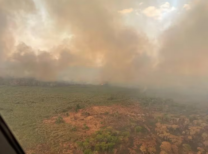 El humo proveniente de los incendios forestales en Bolivia, Brasil y Paraguay está afectando a varias provincias de Argentina, donde se espera que las condiciones meteorológicas generen lluvias contaminadas. EFE/ Sebastião Moreira