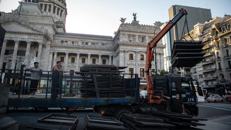 Preparativos para el acto del miércoles 24 frente al Congreso / Foto: Cris Sille
