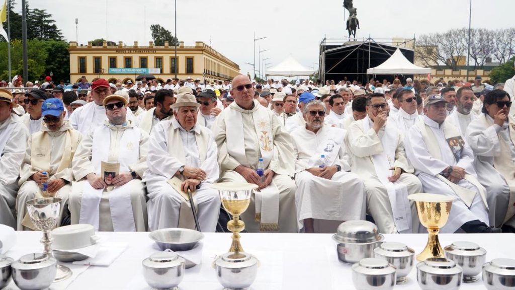 Frente a la Basílica Santuario de Nuestra Señora de Luján miles de fieles participan de la ceremonia que encabezará el Cardenal Fernando Vérgez Alzaga.