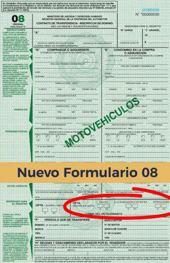 El nuevo formulario 08 permite a los usuarios optar por pagar o no los impuestos provinciales y municipales asociados al vehículo directamente en el Registro