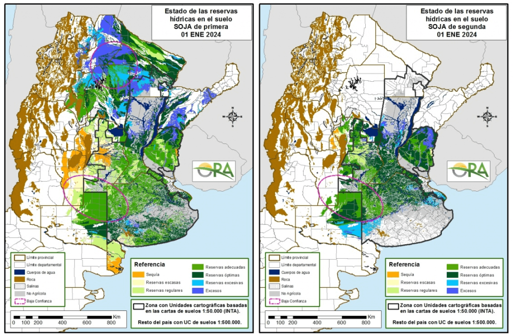 Como dato relevante, el documento cita que, a diferencia de los primeros días del año pasado, predominan actualmente las áreas sojeras con reservas adecuadas a óptimas, con incluso algunas zonas con almacenajes temporalmente excesivos.