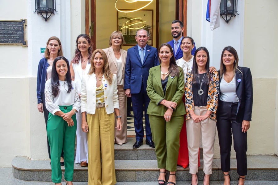 Reflejando la paridad adquirida en las últimas elecciones, las Ediles María Eva Jiménez, Malena Mazal, Valeria Gómez de Oliveira, Judith Salom, Laura Traid, Luciana Scromeda y la Defensora del Pueblo, Valeria Fiore fueron elegidas por el Cuerpo para integrar la comitiva de bienvenida que recibió al intendente capitalino, Leonardo Stelatto en la Casa del Pueblo.
