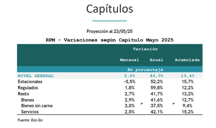 En paralelo, EcoGo pronosticó un aumento de solo 1,8% en los precios regulados por el Gobierno y del 2,7% para la inflación núcleo, en este último caso más impulsada por las subas de bienes que por las de servicios.