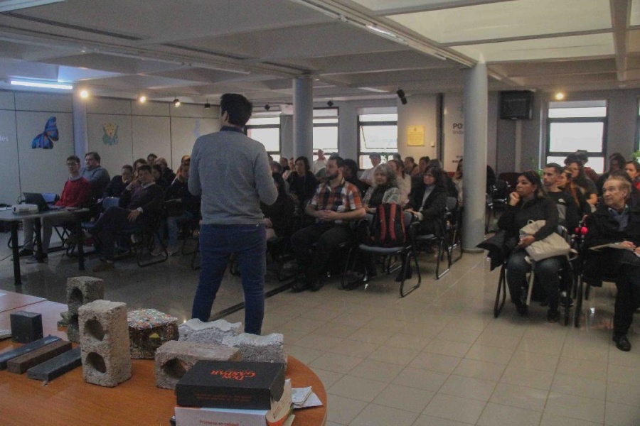 A su vez, el funcionario mostró a los asistentes algunos de los trabajos que se realizan con materiales reciclables, como adoquines de cemento mezclados con vidrios, plásticos y/o telgopor; juguetes; y madera plástica.