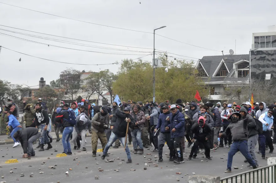 La policía intenta neutralizar la protesta con balas de goma y gases lacrimógenos. Los militantes responden con piedras y proyectiles de metal. La disputa cuerpo a cuerpo entre los manifestantes se extiende desde la Legislatura hasta el Parque Xibi Xibi, que cuenta con un río casi seco que atraviesa el centro de la ciudad. De allí los manifestantes toman las piedras para atacar a los efectivos de seguridad. Hay manifestantes heridos, según se constató en videos publicados en las redes sociales. Pablo Jure, director del SAME Jujuy, dijo a TN que uno de los manifestantes tiene traumatismo de cráneo y su estado es de gravedad. Hay 17 detenidos, según el diario El Tribuno.