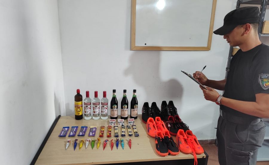 Durante la inspección, los uniformados secuestraron bebidas alcohólicas, cigarrillos y golosinas que habían sido sustraídas de un kiosco ubicado en avenida San Martín, así como seis pares de zapatillas deportivas robadas de una zapatería situada en la misma arteria.