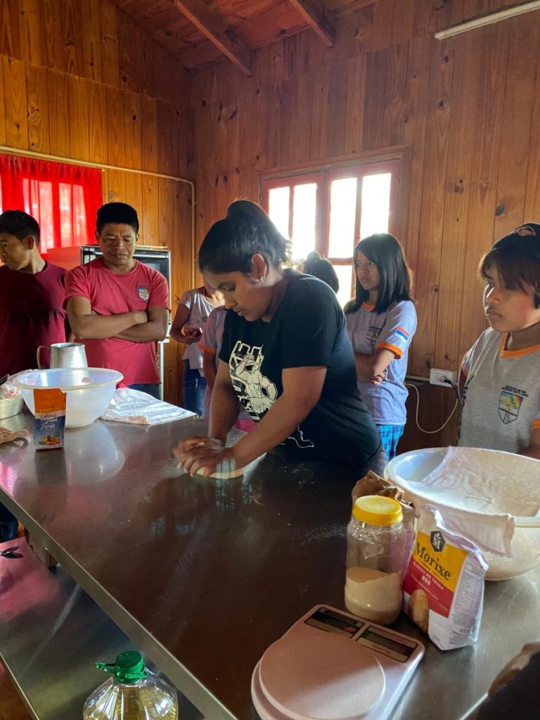 El segundo bloque estuvo orientado a la cocina propiamente dicha. Gabriela Da Silva, especialista en gastronomía, junto con Matías Galarza y la nutricionista Constanza Fornerón, prepararon recetas como bizcochuelos, pastas caseras y pre-pizzas, todas ellas pensadas para ser económicas, fáciles de realizar y con ingredientes disponibles localmente. Estas recetas no solo destacaron por su valor nutricional, sino también por su versatilidad y durabilidad, aspectos esenciales para las familias de la región.