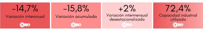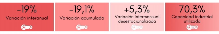 Todos estos resultados surgen del Índice de Producción Industrial PyME (IPIP) que elabora CAME, con una muestra que alcanzó a 414 industrias PyME a nivel federal.