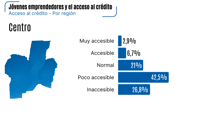 Finalmente, al analizar el origen de la creación de los negocios, el 81% mencionó ser fundador de su empresa o emprendimiento y el 19% ser relevo generacional. Por este motivo, se requieren políticas que permitan el desarrollo y apoyo estructural a los jóvenes formadores de negocios para superar las barreras identificadas, especialmente en áreas críticas como el acceso al crédito.