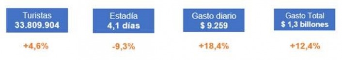 - Entre la segunda quincena de diciembre y fines de febrero 33,8 millones de turistas eligieron vacacionar en destinos locales y gastaron $ 1,3 billones.