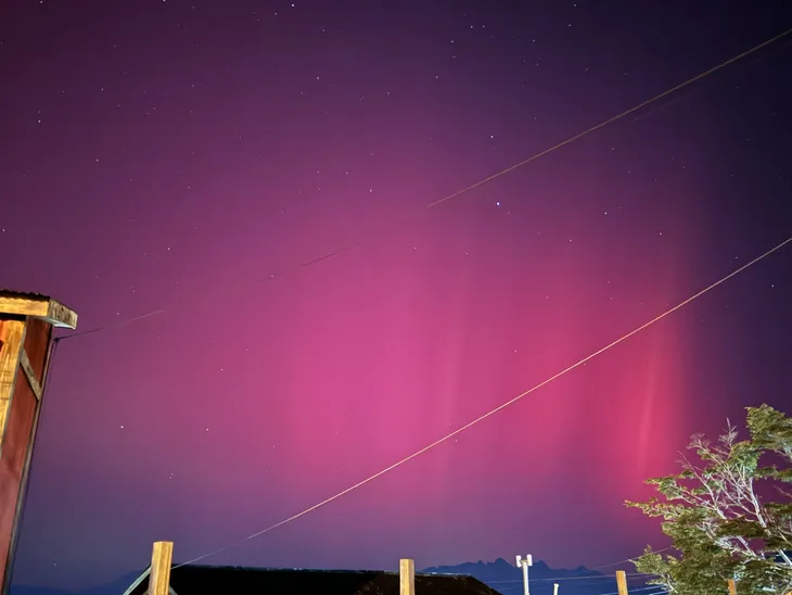 Una fuerte tormenta solar provocó este viernes un espectáculo inédito al sur del país. Los habitantes de Ushuaia registraron y compartieron en redes sociales fabulosas imágenes del cielo teñido de fucsia por auroras australes.