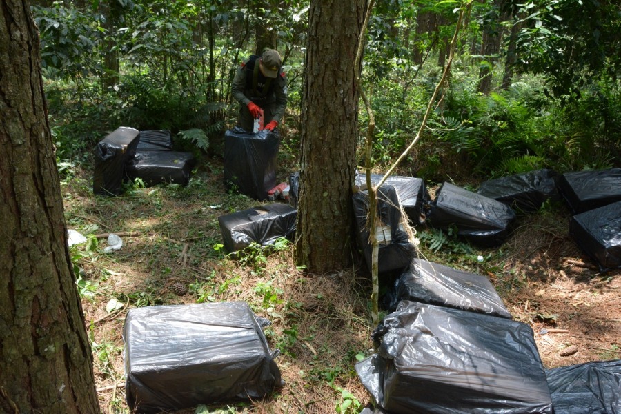 En un segundo procedimiento, una patrulla que recorría senderos en la periferia de la localidad de Puerto Esperanza, momentos en los que observaron gran cantidad de cajas de cartón ocultas en una zona de malezas. Rastrillada la zona fueron halladas 38 cajas conteniendo un total de 19.000 paquetes de cigarrillos de origen extranjero que carecían del aval aduanero correspondiente , con un aforo de 25.726.000 pesos.