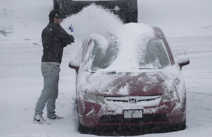 En Kentucky, Louisville registró 19,5 centímetros (7,7 pulgadas) de nieve el domingo, un nuevo récord para la fecha que superó la marca anterior de 7,6 centímetros (3 pulgadas) establecida en 1910.