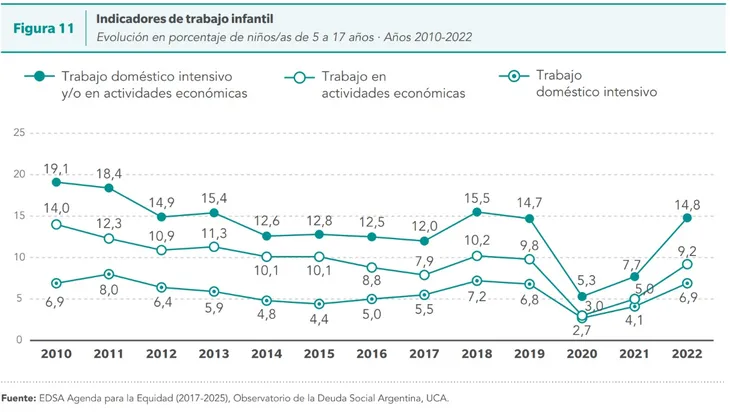 El documento publicado por la UCA demostró que hubo una abrupta caída en el trabajo infantil durante la pandemia y en 2022 superó los niveles previos.