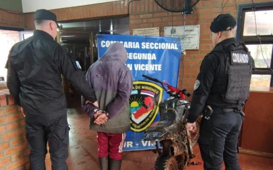 Por otra parte, en la localidad de San Vicente, arrestaron a un ladrón de 22 años que había robado una motocicleta Honda 125 cc de una vivienda ubicada en Picada Molino. Tras tareas investigativas, el sospechoso fue interceptado cuando se desplazaba en una Keller 150 sin dominio colocado, y con anomalías en el grabado del motor y del cuadro.