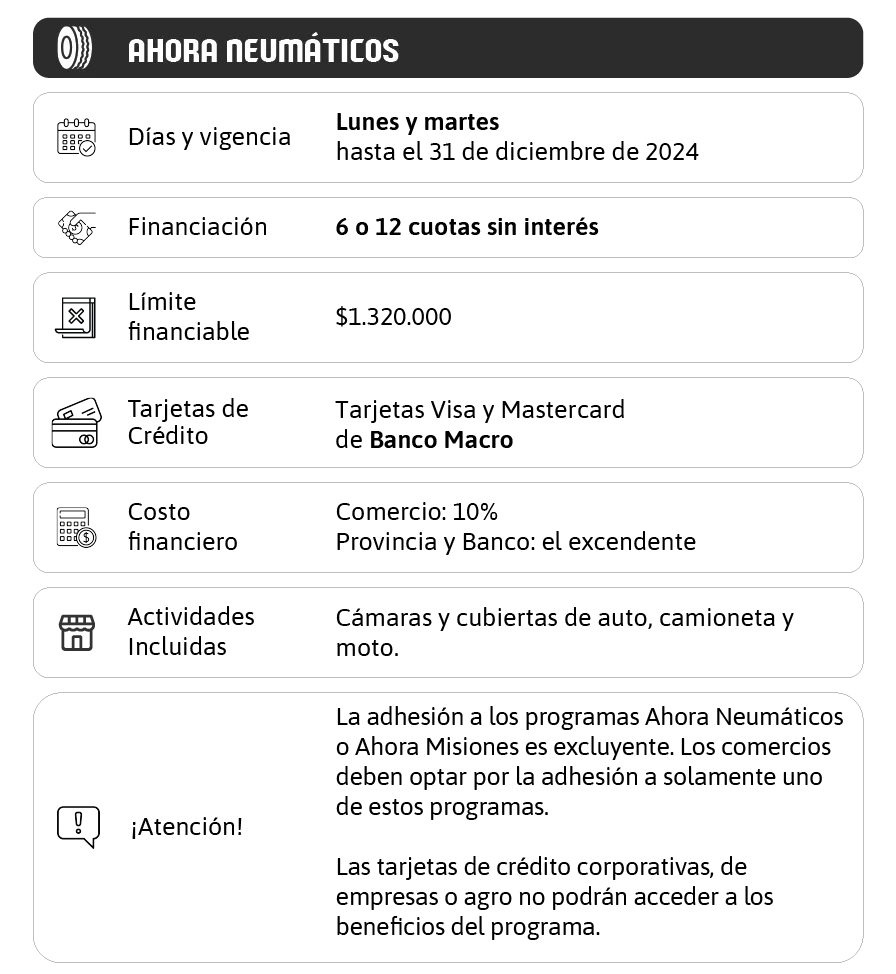 Ahora Neumáticos: el tercer programa misionero que más mueve el mercado