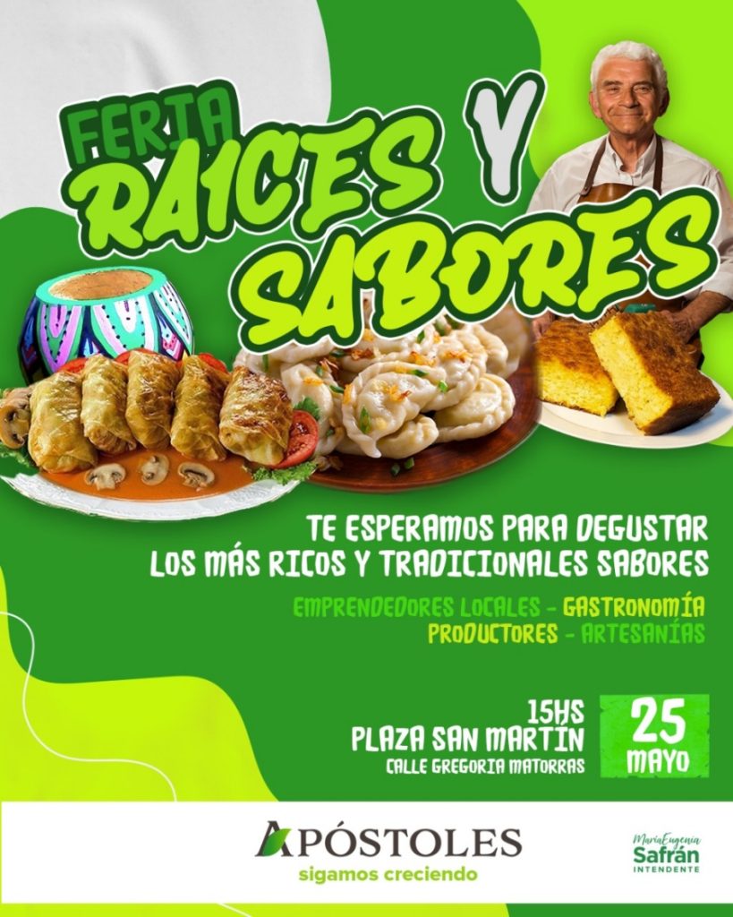 Apóstoles: El sábado 25 de Mayo llega la Feria “Raíces y Sabores” al Municipio, con la participación de emprendedores locales, variedad en gastronomía, diversos productores y exposición de artesanías