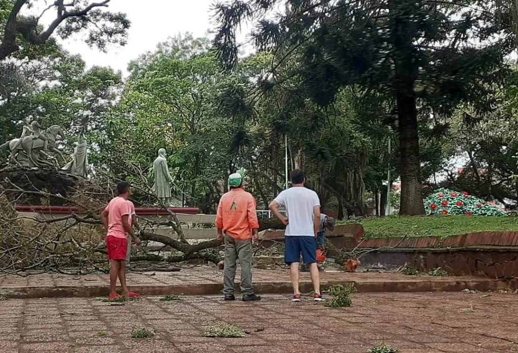 Luego del mediodía del domingo y sin que los portales del servicio meteorológico anticiparán, en la ciudad misionera de Apóstoles, hubo fuertes vientos que azotaron la ciudad con caídas de árboles, desprendimiento de gajos con la consecuencia que el tendido de la red del servicio eléctrico fue arrastrado hacia el suelo.