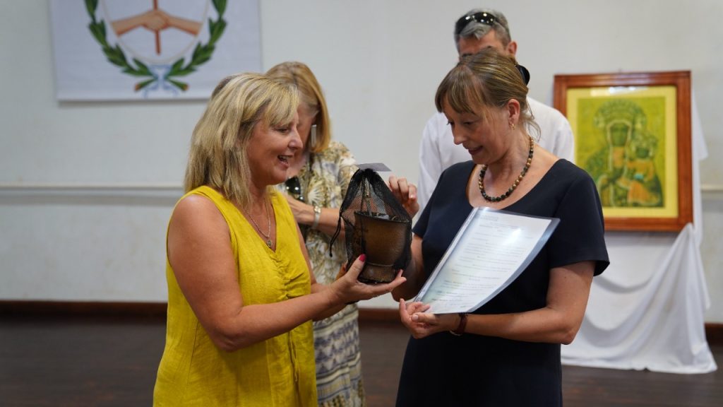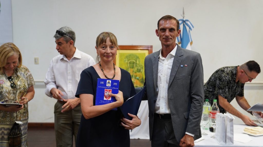 En esta oportunidad fue recibida por la Intendente local, María Eugenia Safrán, integrantes de la Colectividad Polaca, parte del Gabinete Municipal, entre otros.