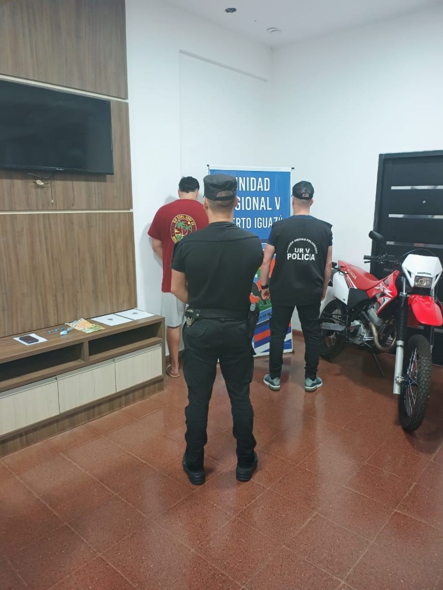 El segundo hecho se registró también el día sábado alrededor de las 21,30 horas, en la ciudad de Puerto Iguazú, sobre la calle Marta Schwarts casi Bernabé Méndez, donde un motociclista intentó evadir un control policial, pero fue detenido tras una persecución controlada. Se trataba de un joven de 26 años, quien llevaba en su poder envoltorios con cocaína, dinero en efectivo y un teléfono celular. La Justicia Federal dispuso la detención del implicado, el secuestro de la droga, el dinero, el celular y la motocicleta.