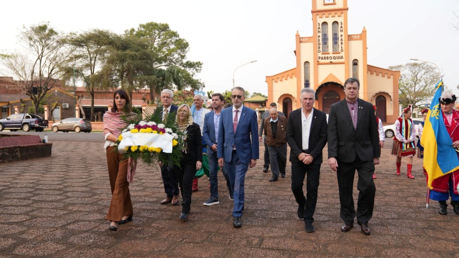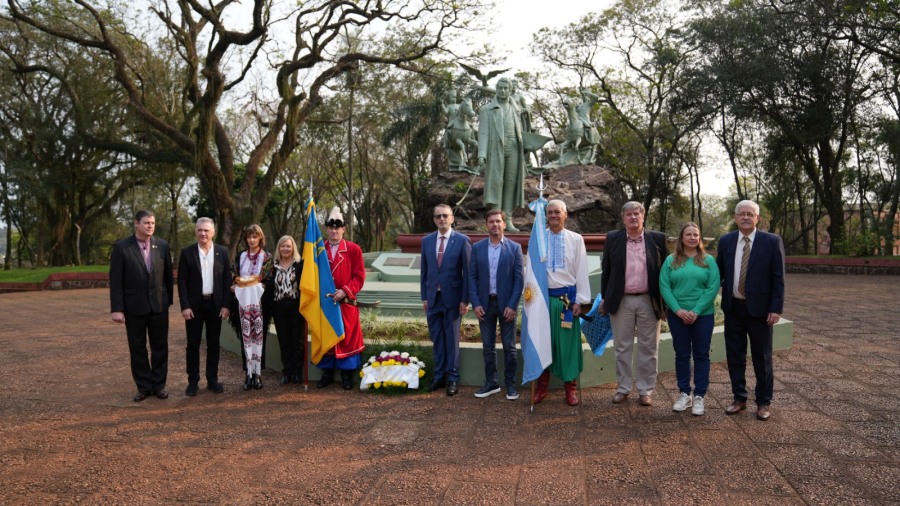 Posteriormente, se realizó un acto en el monumento a Taras Shevchenko por el 33° aniversario de la Independencia de Ucrania, donde se entonaron los himnos nacionales de Argentina y Ucrania, y se realizó una ofrenda floral en memoria de los héroes caídos por Ucrania. El Embajador también visitó el Museo de Rulo Grabovieski, la Iglesia ucraniana Santísima Trinidad, y el Club Argentino Ucraniano de Apóstoles, donde se le obsequió una camiseta del equipo de rugby ucraniano.