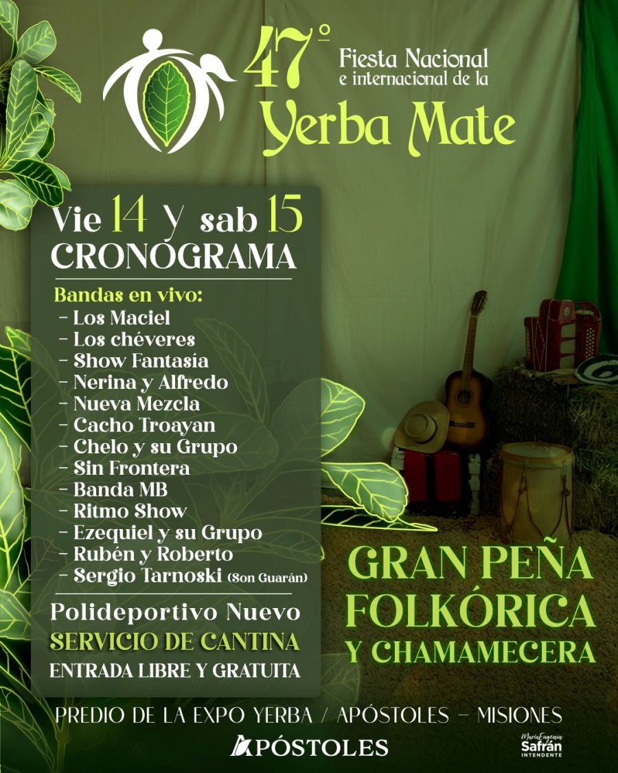 “La Peña es el corazón popular de nuestra fiesta, un espacio para disfrutar, compartir y celebrar nuestras raíces”, expresó Safrán durante la presentación. El encuentro se desarrollará este viernes y sábado en el Polideportivo Nuevo de la Expo Yerba, con entrada totalmente gratuita.