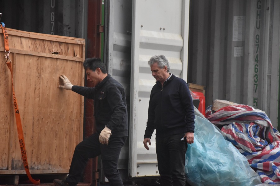 Los contenedores, destinados a la empresa china radicada en el parque, contienen materiales para la construcción de su primera nave industrial, así como maquinarias y dispositivos necesarios para el proceso productivo, que utilizará materia prima local de bambú.