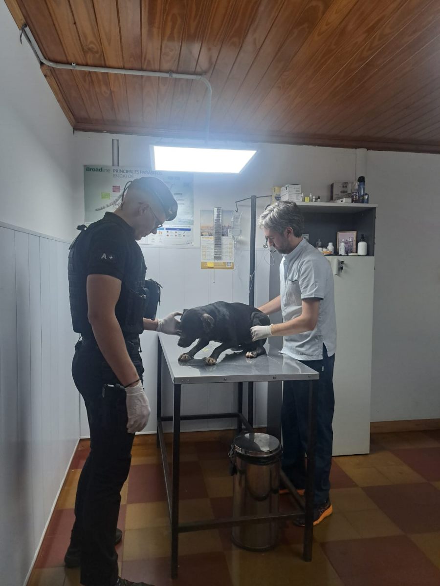 En el lugar se localizó al animal en el estado descripto, procediéndose a su traslado a una veterinaria para recibir la atención y asistencia correspondiente, informándose además que los gastos del tratamiento serán solventados por la protectora De Pocas Pulgas, garantizando así su cuidado y recuperación.