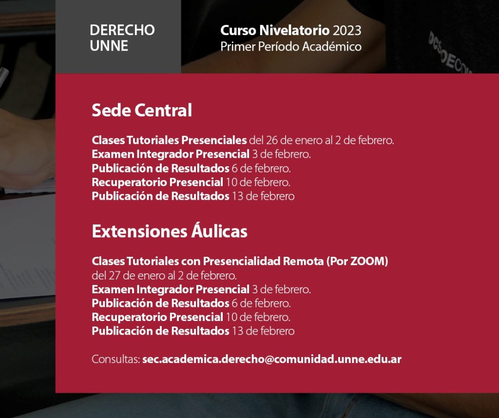 Se pueden realizar consultas al correo electrónico sec.academica.derecho@comunidad.unne.edu.ar