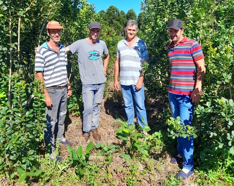 El productor Julio Goldhardt, del Municipio misionero de El Alcázar, muestra con satisfacción la buena reacción que tuvo el cultivo de yerba mate, con más hojas, tras la limpieza de plantas que se realizó en diciembre con motosierra, con el acompañamiento del Ing. Agr. Gustavo Baumgratz, del Servicio de Extensión Yerbatero (SEY) del Instituto Nacional de la Yerba Mate (INYM).