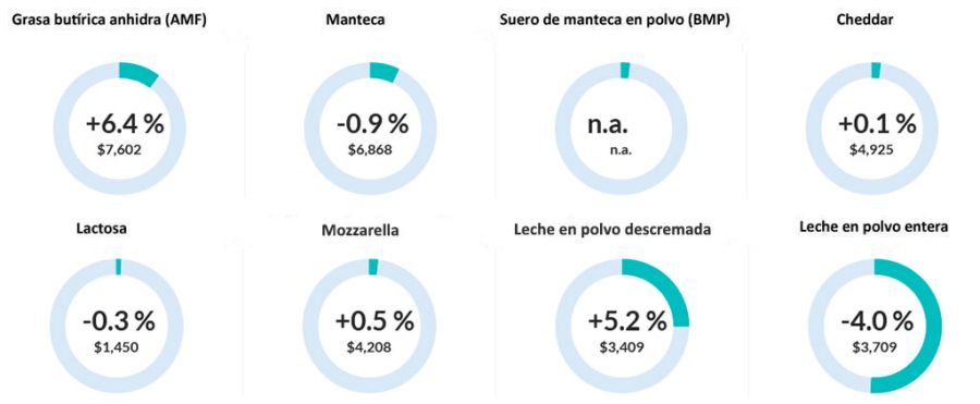 En este marco, el valor de referencia para la leche en polvo entera disminuyó a U$S3.709 la tonelada (-4%) respecto de la anterior subasta. Contrariamente, la versión descremada, ascendió a U$S 3.409 (+5.2%).