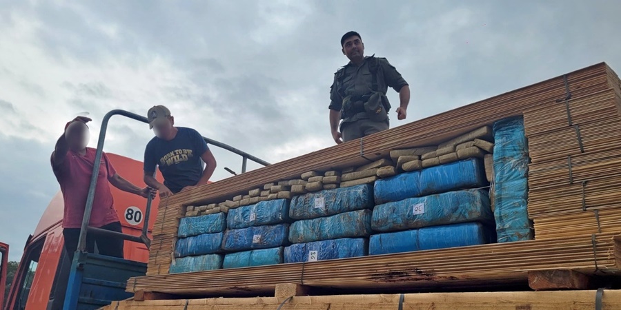 Ante la presencia de testigos, los gendarmes inspeccionaron minuciosamente la carga, comprobando que las tablas se encontraban dispuestas de tal manera que conformaban una cavidad hueca, similar a un cajón, en cuyo interior se encontraban dispuestos gran cantidad de bultos envueltos en plástico, que emanaban un fuerte olor similar al de la marihuana.