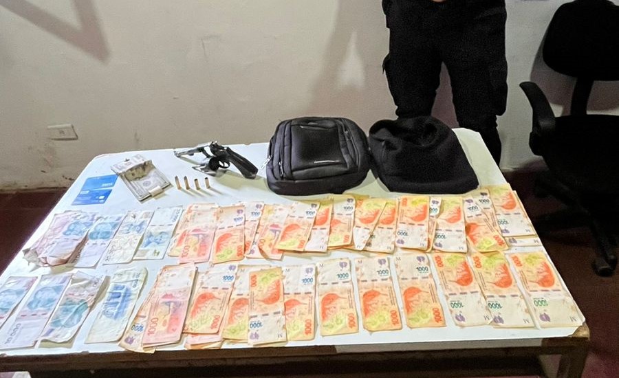 Durante el operativo, se recuperaron 165 mil pesos en efectivo, un revólver calibre 38 mm con vainas servidas y cartuchos, una billetera, un pasamontaña y una cuellera, coincidentes con los elementos utilizados durante el asalto.