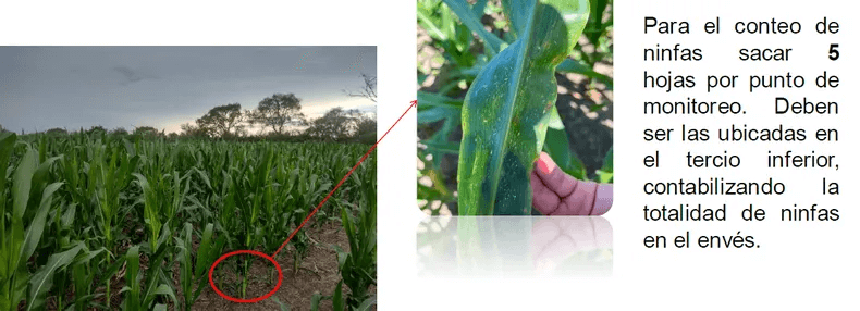 En sectores de baja incidencia, se aconseja tomar muestras de 20 plantas consecutivas, mientras que en lotes con alta incidencia se pueden muestrear 10 plantas; en todos los casos debe focalizarse al atención en el cogollo de la planta.