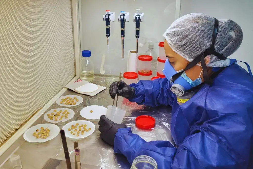 En paralelo, continúan con ensayos de nuevas variedades para probar protocolos con otras variedades, que tienen baja regeneración de plantas.