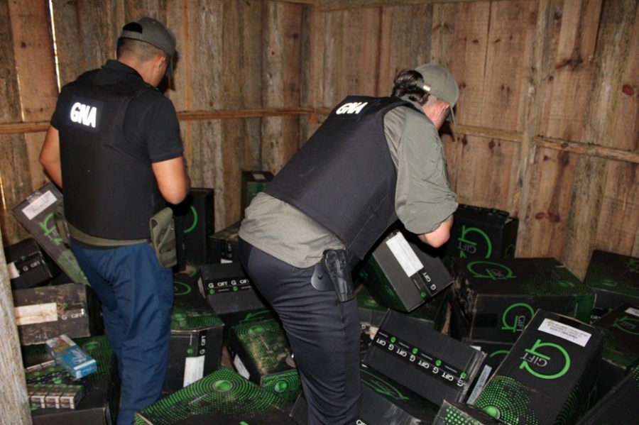 Recepcionada la orden de allanamiento se requisó el inmueble, en cuyo interior se encontraban acopiados 19.900 paquetes de cigarrillos de origen extranjero, distribuidos en 40 cajas de cartón. Asimismo, la camioneta utilizada poseía pedido de secuestro activo por robo en el vecino país.