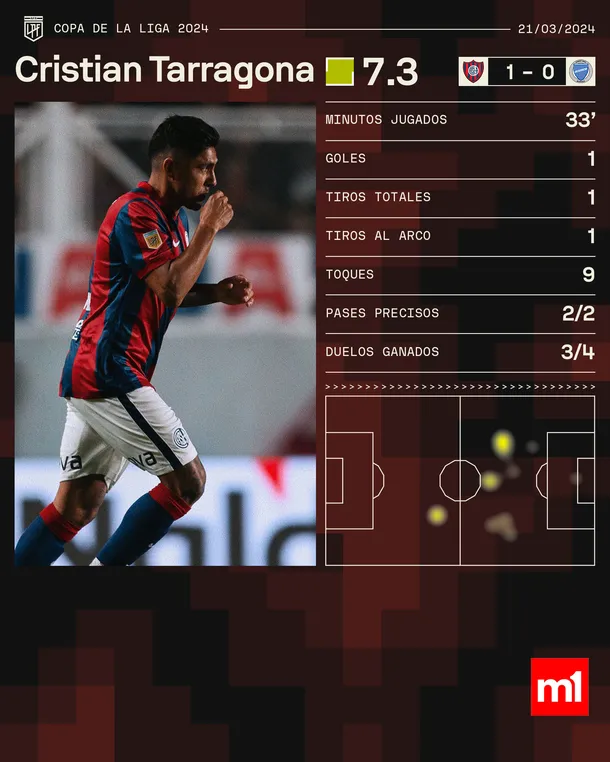 A los 22 minutos del complemento, Cristian Ferreira metió un centro desde el tiro libre por le derecha, Gonzalo Luján peinó la pelota para el centro y Tarragona conectó con la pierna para el 1 a 0.