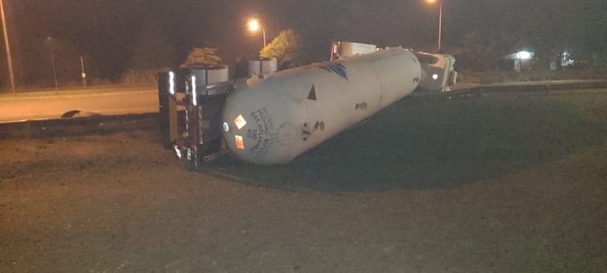 Corte total sobre Ruta Nacional N° 14 a la altura de la rotonda acceso norte, a la localidad misionera de Campo Viera, donde volcó un camión cisterna y no se registran personas lesionadas