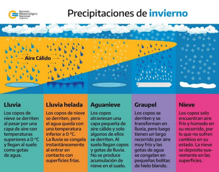 Ola de frío: los tipos de precipitaciones del invierno. Fuente: Servicio Meteorológico Nacional.
