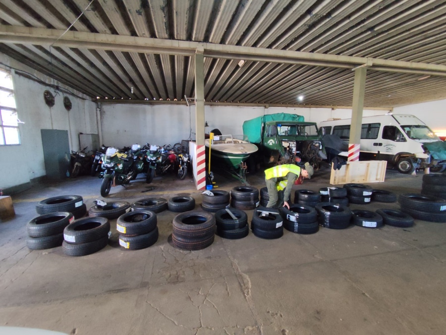Dentro de la paquetería, personal perteneciente al Escuadrón 10 “Eldorado” contabilizó 93 neumáticos de distintos rodados y medidas de origen extranjero, careciendo del aval aduanero correspondiente.
