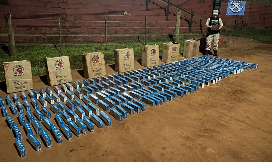 Finalmente, también en la misma localidad, los efectivos de la Institución secuestraron 3.500 atados de cigarrillos de origen ilegal que fueron arrojados desde un vehículo en movimiento, que transitaba por un camino terrado, a la altura progresiva del kilómetro 1.802 del Río Paraná.